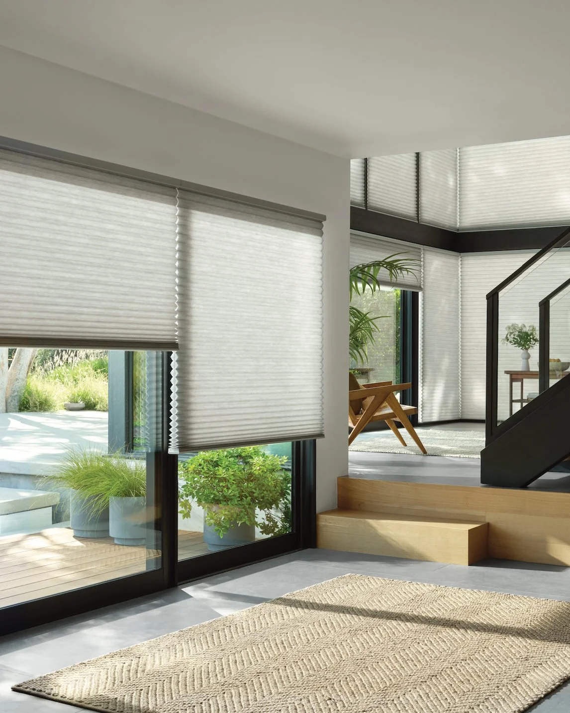 Motorized window coverings bring together convenience, comfort, and modern technology to make managing the natural light in your home easier than ever. With the touch of a button you can raise, lower, or adjust your shades throughout the day.